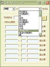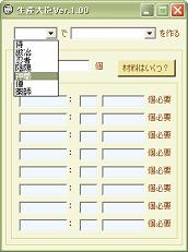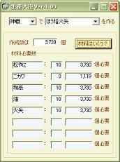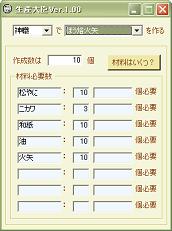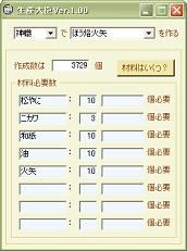 生産材料の必要個数を計算するWindowsアプリケーションです。 操作性や構造にかなり難ありです。 大臣なので傲慢な上に適当で、その割に仕事もほとんど出来ません。 割り切れる方は、こんな子ですが、使ってやってください。 2006/12/06 1.00→1.01 バージョンアップしました。 ・知行に対応 ・自動フォーカス移動を追加 生産大臣Ver.1.01(lzh) 各材料の必要個数が表示されます。 これだけ。 箱入りなので想定外な出来事には対応できません。 あんまりいじめないでやってください。 【注意】 ・動かなくなった。 ・データがおかしい。 ・システムエラーです、って出た。 ・いきなり閉じた。 ⇒バグです。 どんな状況(データ)でどのような状態になったか教えてくださいませ。 ちなみに。 作成数を無入力にしてボタン押すと規定数が見れます。 わかんなくなったときにどうぞ。